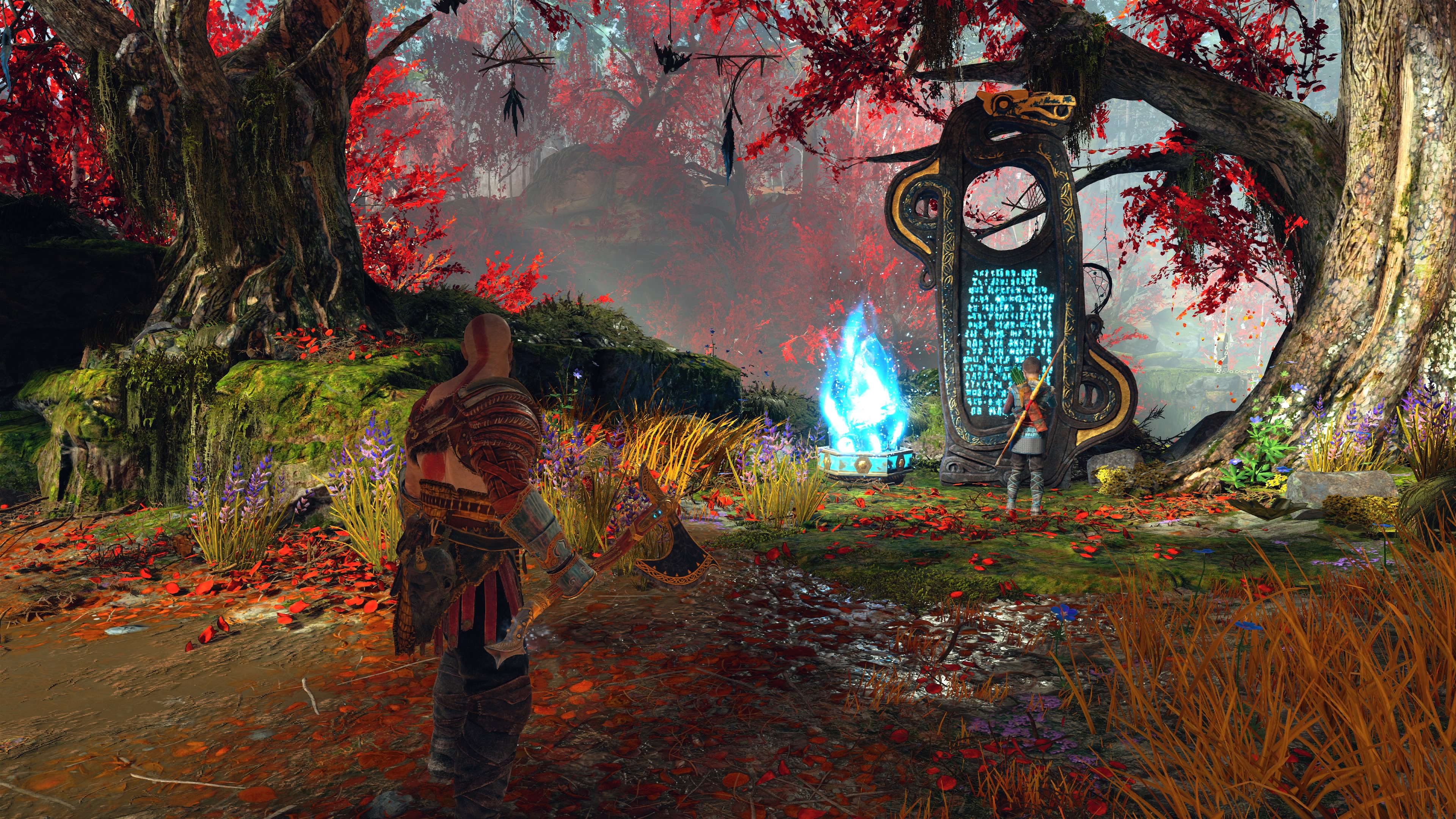 La qualité d'image, parlons-en : les God of War ont toujours été sublimes, et c'est peu de le dire. Seulement voilà, les limitations de leurs angles de caméra et leur aspect finalement très scripté, cherchant à favoriser les prouesses de réalisation, ne pouvaient que faire d'eux des références graphiques, pas en reste en terme d'animation, mais fatalement plus creuses en terme de gameplay. Si le nouvel épisode des aventures de Kratos a toujours pour but d'en mettre plein la vue, son choix d'environnement semi-ouvert, couplé donc à un plan-séquence aussi audacieux que risqué, aurait légitimement pu remettre (un peu) en cause la finition d'ensemble. Sauf que Sony Santa Monica n'est pas du genre à faire dans la concession. Nulle part. Il en résulte un titre divinement beau, non seulement porté par un photoréalisme déconcertant, mais surtout une touche visuelle hors du commun que la technologie High Dynamic Range (HDR) va faire exploser de mille feux. On pense bien sûr, fatalement, aux couleurs éclatantes et incroyablement vives de cette forêt aux feuilles rouge écarlate et aux herbes "poil de carotte", vitrine technologique parfaite pour l'expérience HDR, un style que Horizon Zero Dawn avait déjà cherché à bien mettre en vue un an auparavant, et dont le très attendu Ghost of Tsushima nous fait d'ores et déjà rêver depuis sa dernière bande-annonce publiée il y a six mois, à l'E3 2019. Pourtant, "GoW" ce n'est pas qu'une forêt automnale étonnante faisant la part belle au surnaturel, loin de là ; si le titre chapeauté par Cory Barlog veut nous transporter dans un environnement fantastique et délibérément haut en couleurs, les environnements proposés s'avèrent d'un réalisme aussi déconcertant que leur netteté et leur précision – et ce en 1080p comme en 4K. C'est un fait : les limites atteintes deux ans avant par Uncharted 4: A Thief's End, légèrement repoussées l'année suivante par The Lost Legacy, son excellent stand-alone, avaient été remises en question par la qualité néanmoins inégale des graphismes de Horizon, aventure là aussi empreinte de fantaisie et désireuse de s'offrir une direction artistique bien à elle. N'ayons pas peur des mots : d'un coup de force dont son héros a le secret, God of War empoigne les deux précédents triples A majeurs de Sony, les fracasse l'un contre l'autre et en tire le meilleur pour livrer un résultat d'une beauté inouïe les dépassant allègrement sans que l'ombre d'un débat ne soit envisageable.